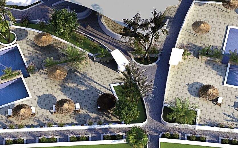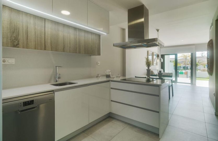 De huizen hebben twee-drie slaapkamers en twee badkamers. De slaapkamers hebben ingebouwde kasten en de badkamers worden compleet opgeleverd met een wastafel met meuble, spiegel en doucheschermen. Daarnaast hebben de appartementen en duplex woningen pre-installatie van airconditioning en verwarming via kanalen in de woonkamer en slaapkamers. Wat betreft de woon-eetkamer, deze heeft een open conceptontwerp en de keuken is uitgerust met meubels, een Silestone-aanrecht of iets soortgelijks, een afzuigkap, een inductiekookplaat en een elektrische oven.