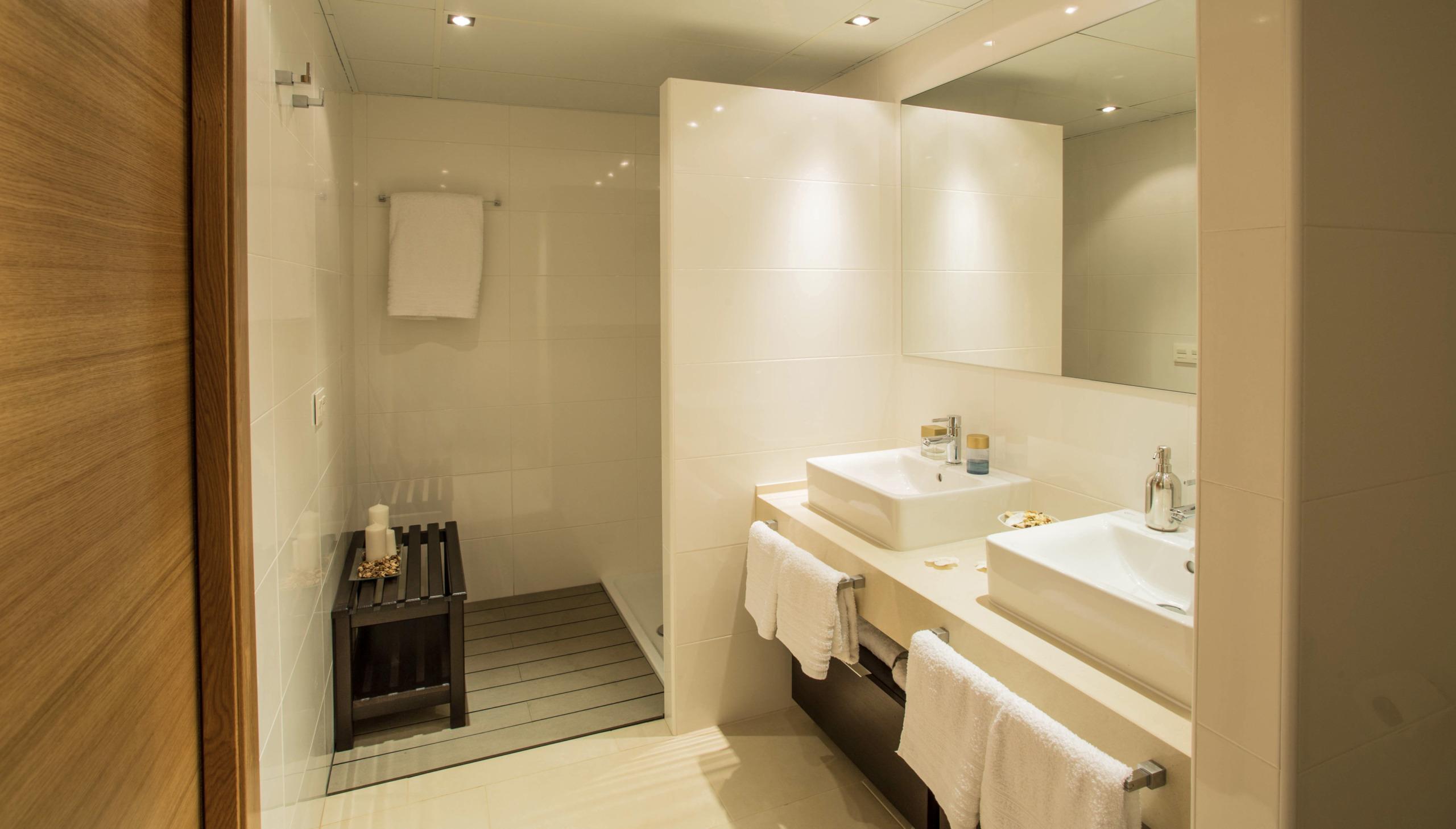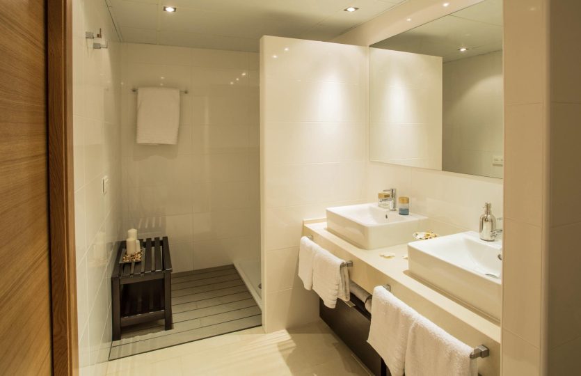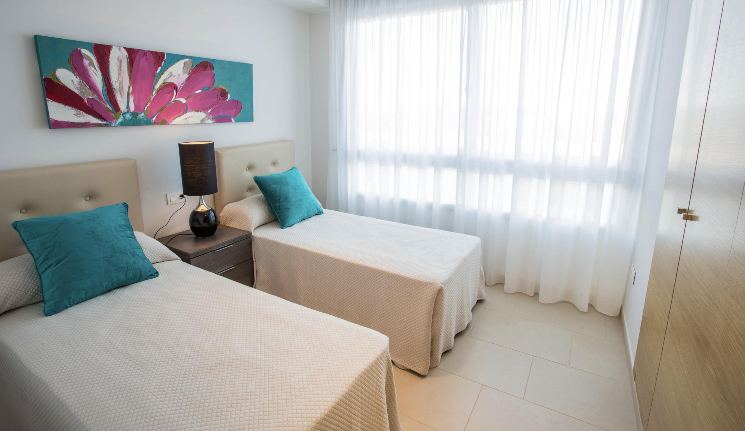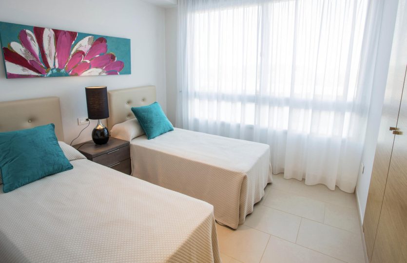 De slaapkamers hebben grote panoramische ramen die zorgen voor veel lichtinval. De badkamers zijn modern van stijl, uitgevoerd in uitstekende kwaliteitsmaterialen en worden compleet geleverd met wastafel, badkamermeubel, spiegel en douchescherm.
