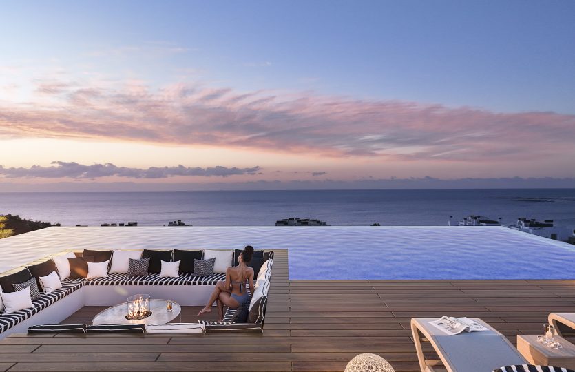 De buitenruimtes bestaan uit drie grote infinity pools, jacuzzi, barbecue zone, groene zones, fitnessruimte, minigolf, co-workingruimte en gastronomische kamer. De appartementen zijn inclusief parkeerplaats en berging.