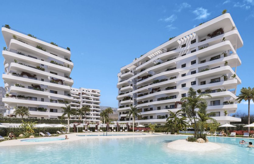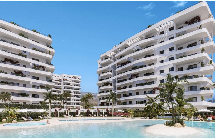 Privé urbanisatie met moderne appartementen met in één, twee of drie slaapkamers en één of twee badkamers in Villlajoyosa.