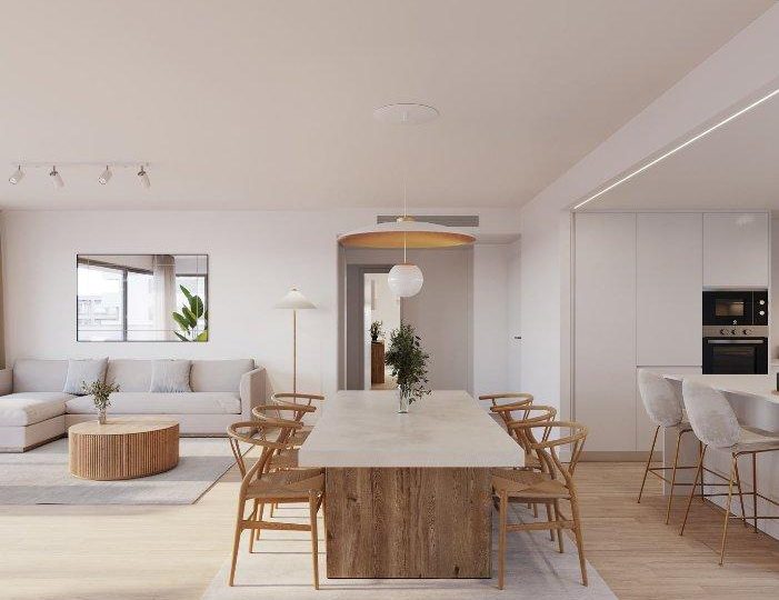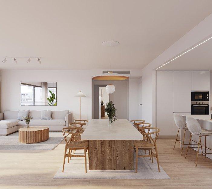 Het heeft een open woon- en eetkamer met veel lichtinval, een volledig ingerichte keuken met hoge en lage kasten en ingebouwde spoelbak. De materialen zijn van uitstekende kwaliteit en de decoratie is elegant.