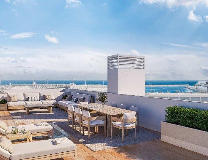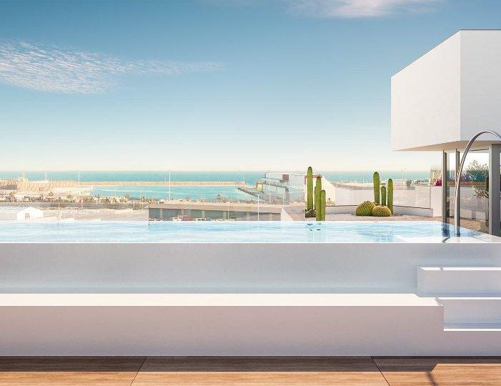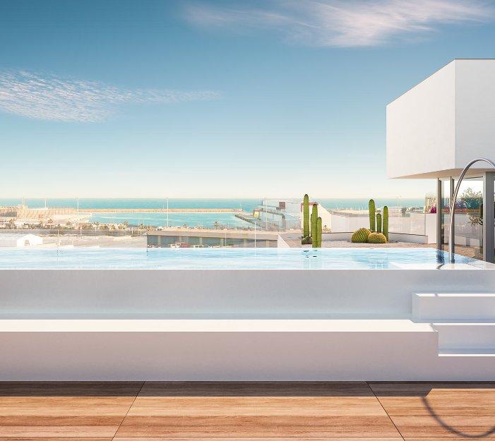 Kenmerken: Gemeenschappelijk zwembad, Gym, Ingerichte keuken, Privé parking, Terras, Voorinstallatie airco, Zeezicht