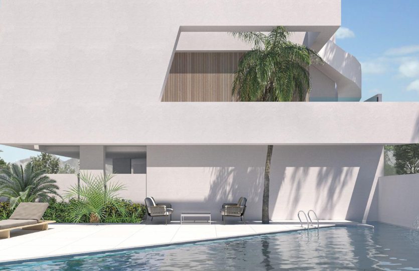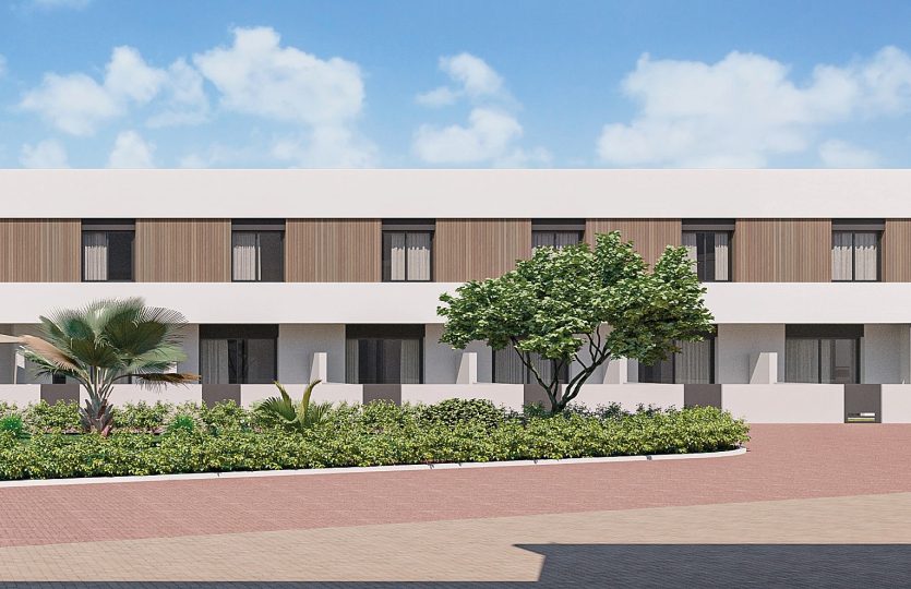 Privé-complex van geschakelde woningen met twee of drie slaapkamers, twee badkamers en gemeenschappelijk zwembad in Pilar de la Horadada.