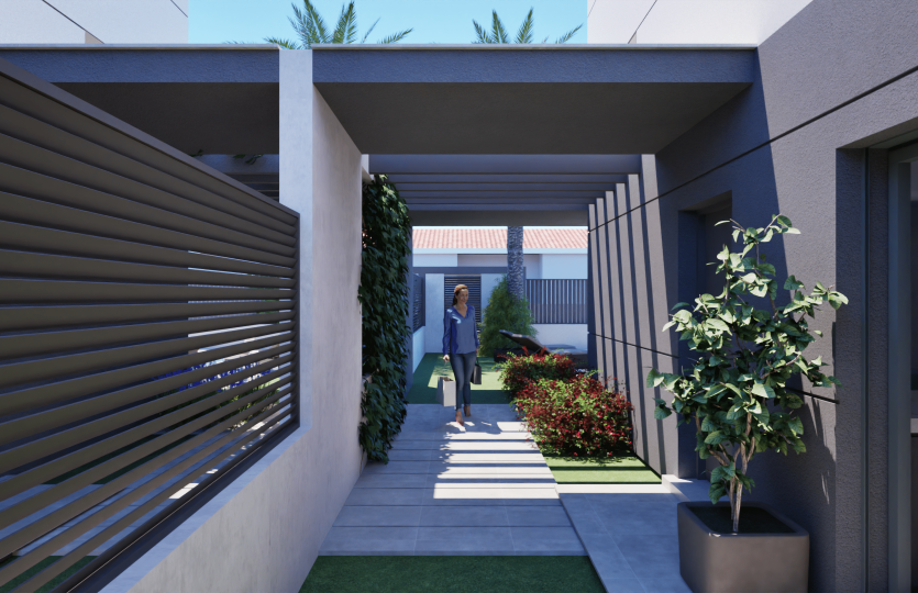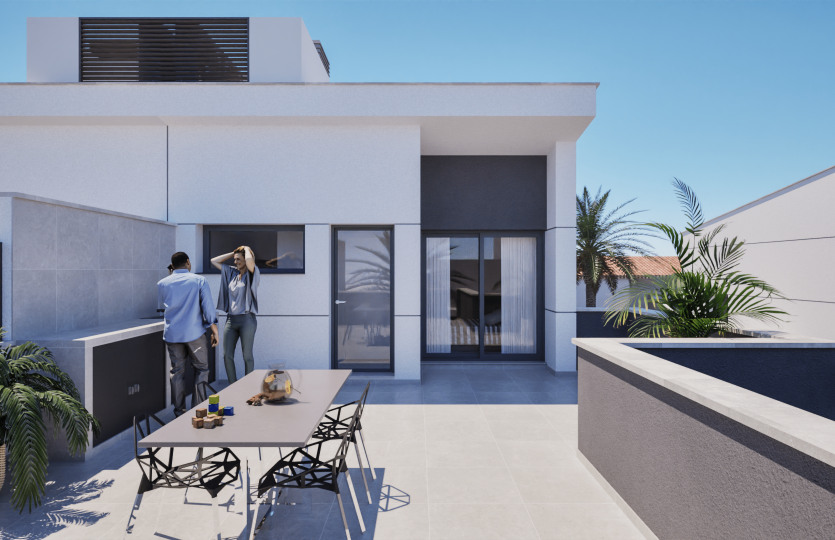 De buitenruimtes bestaan uit een privézwembad, een klein terras met tuin, een dakterras met zomerkeuken en een eigen parkeerplaats. Deze woning biedt een gezellige, lichte en warme sfeer dankzij het mediterrane klimaat met milde winters en warme zomers.