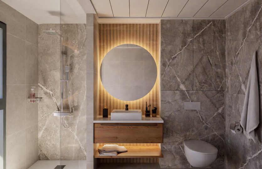 De slaapkamers zijn modern van stijl en zeer ruim. De badkamers zijn voorzien van porseleinen sanitair en worden opgeleverd met wastafel, badkamermeubel, spiegel en douchescherm.