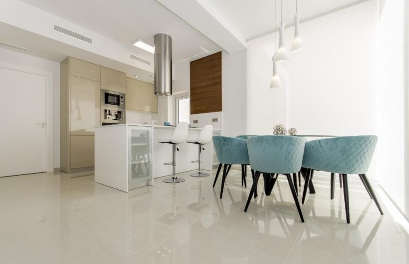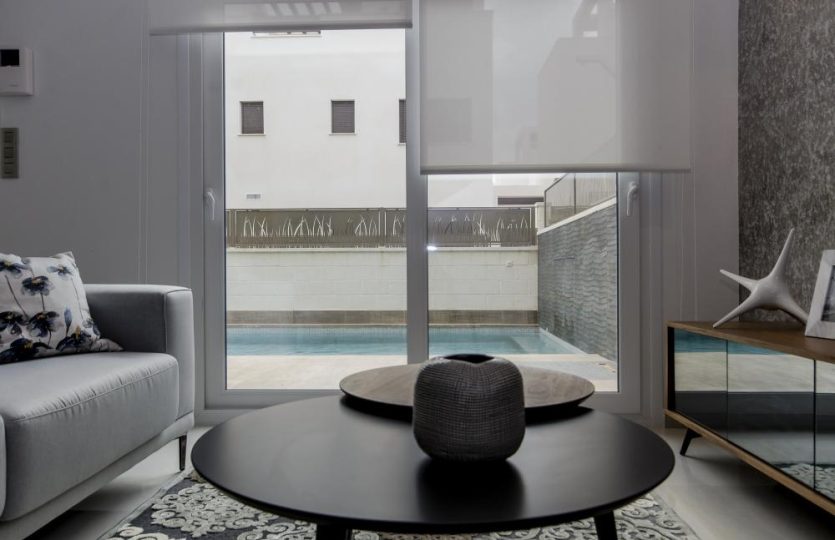 Alle woningen hebben een ruime living/woonkamer met direct toegang tot het zwembad en een open keuken geheel compleet met keukentoestellen.