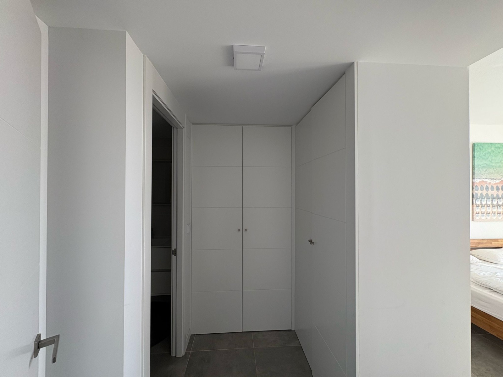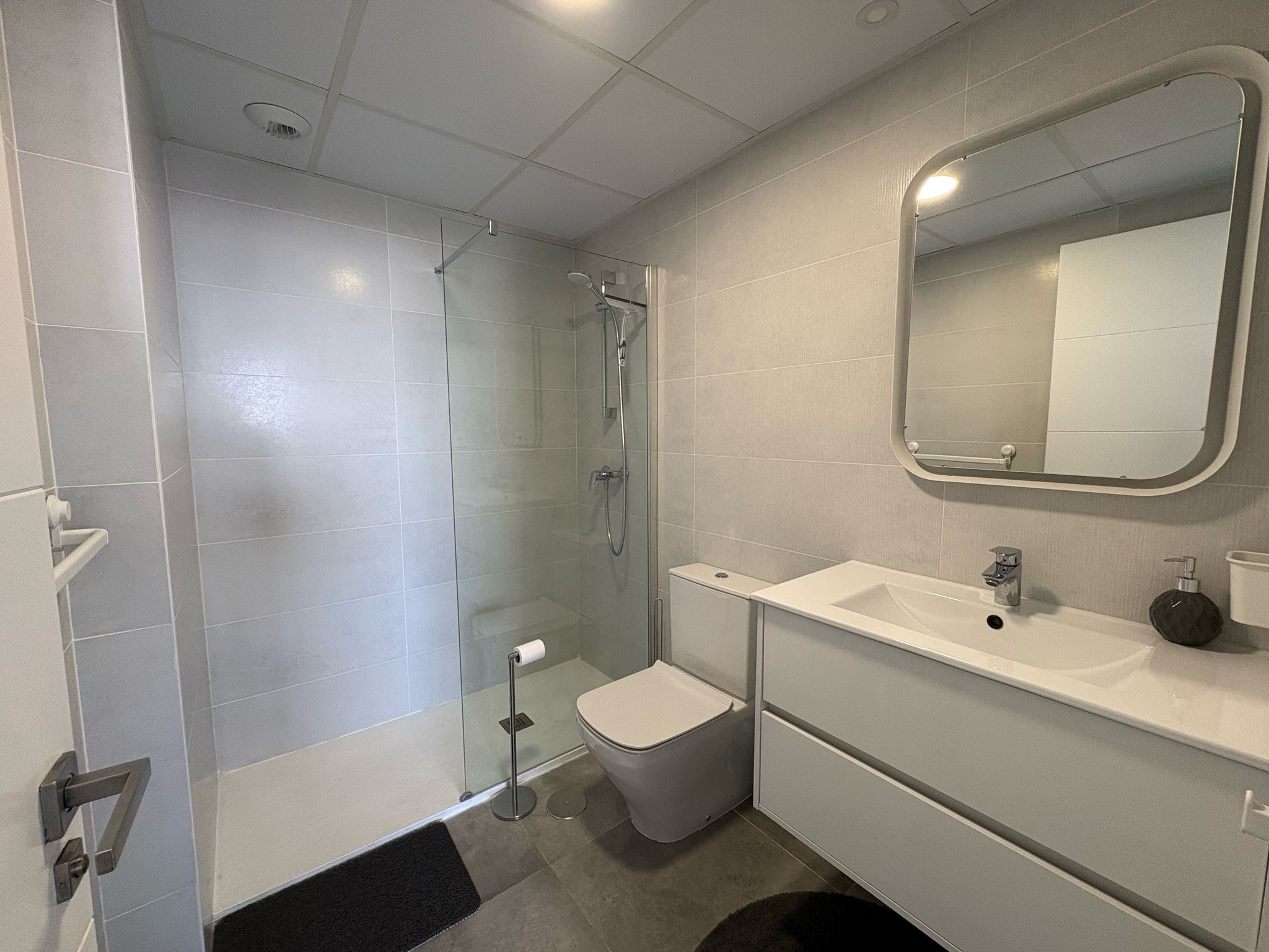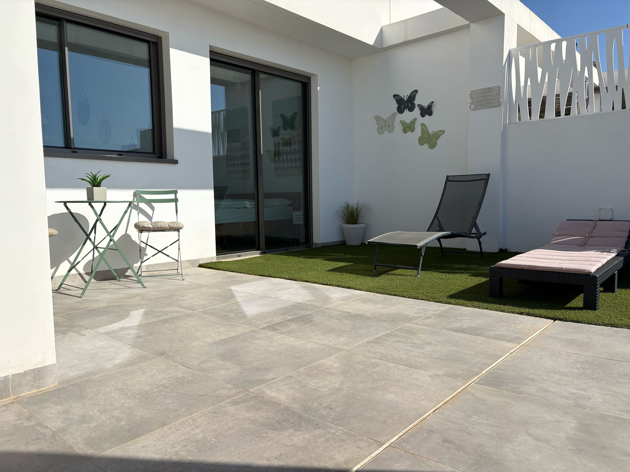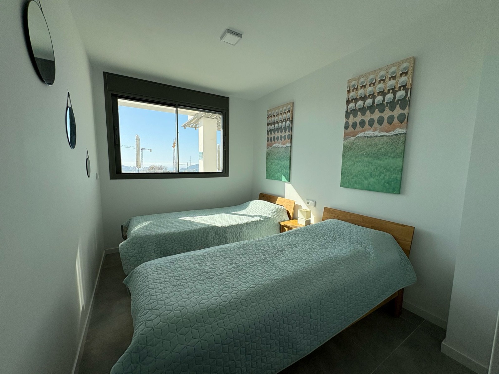 De woning bestaat uit 2 slaapkamers en 2 badkamers. De hoofdslaapkamer is en-suite, heeft directe toegang tot het terras en een ruime inloopkast. De tweede slaapkamer heeft ingebouwde kasten.