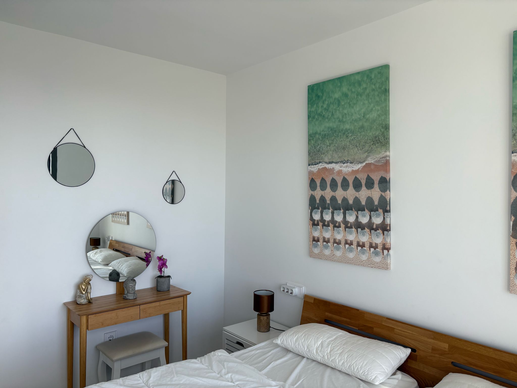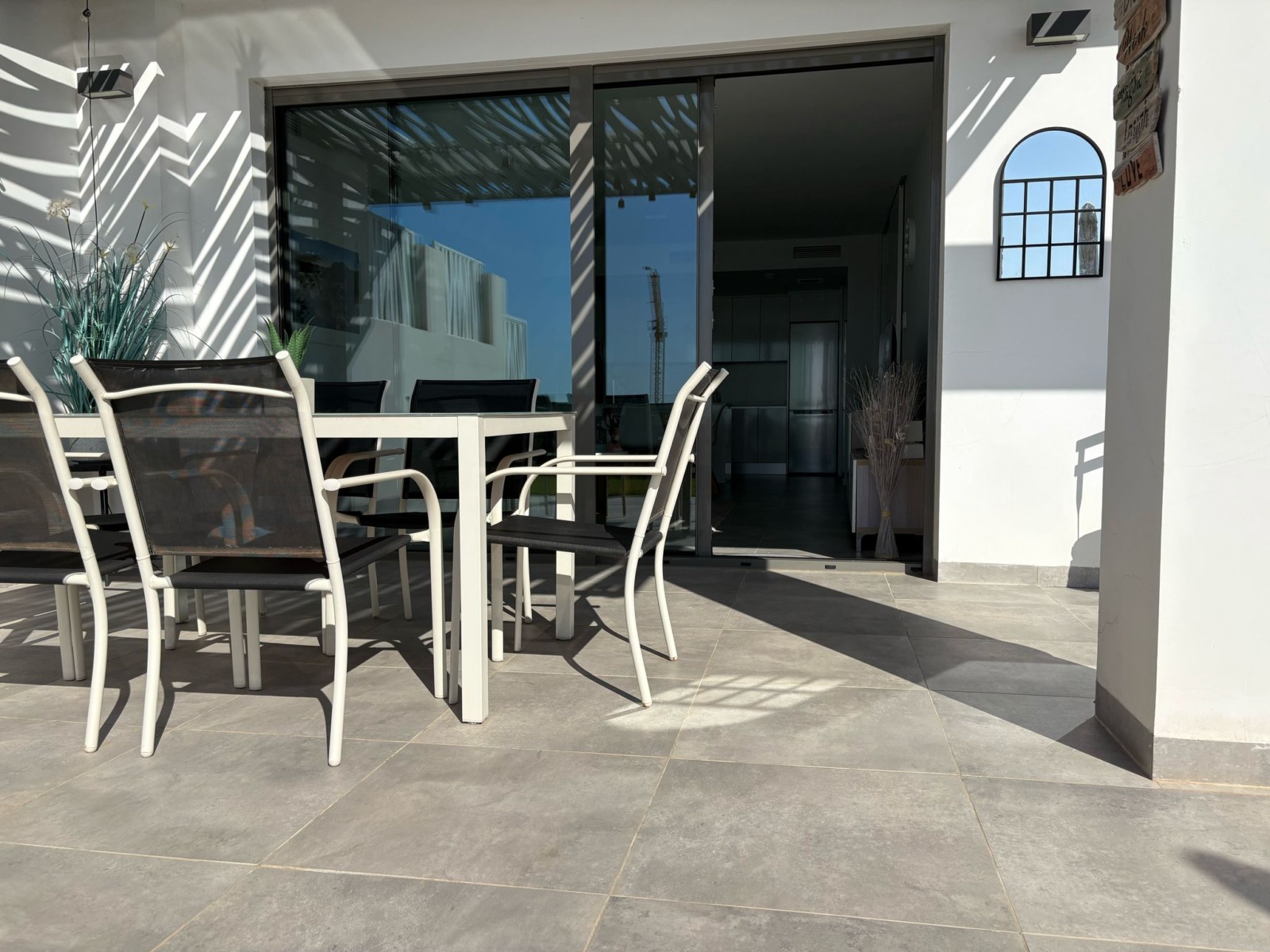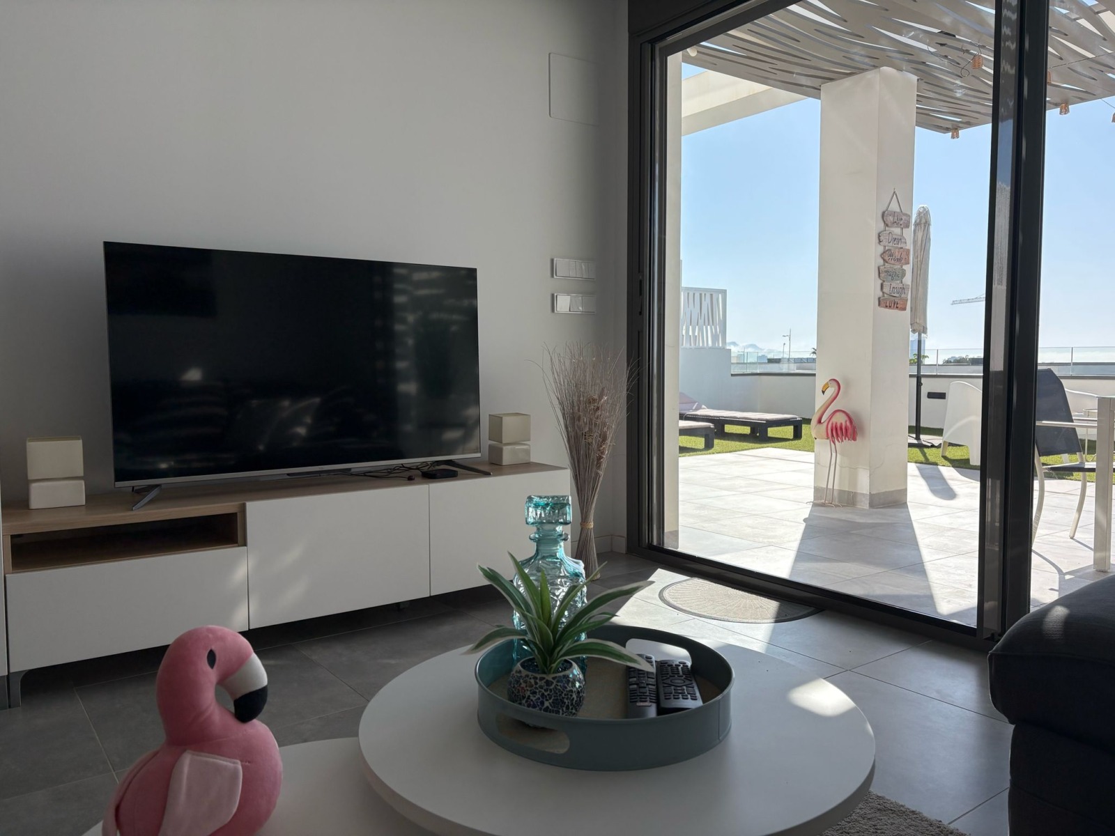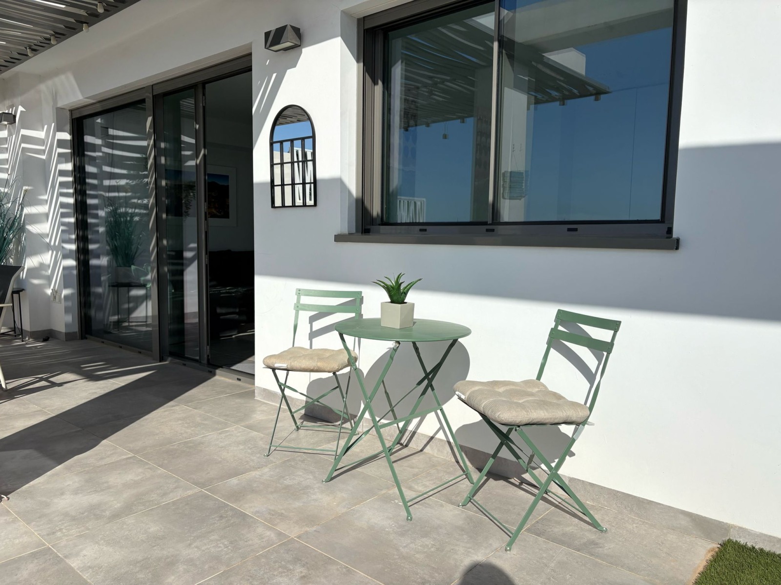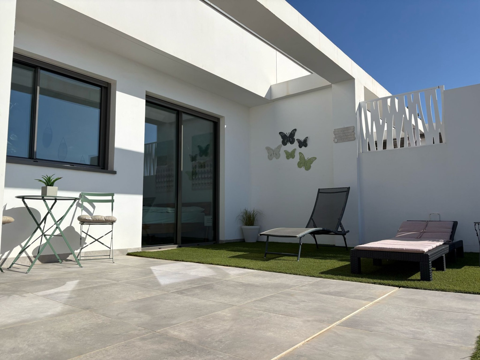 De woning bestaat uit 2 slaapkamers en 2 badkamers. De hoofdslaapkamer is en-suite, heeft directe toegang tot het terras en een ruime inloopkast. De tweede slaapkamer heeft ingebouwde kasten.
