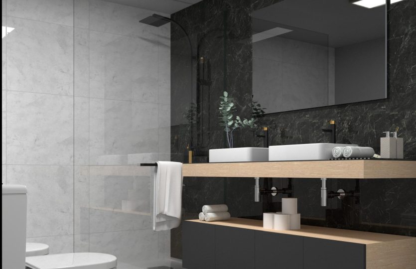 De slaapkamers zijn ruim en modern. De badkamers worden compleet geleverd met badkamermeubilair, douchescherm, douchebak en spiegel.