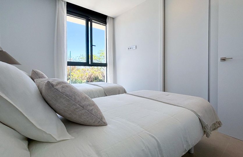 De slaapkamers zijn ruim, genieten veel lichtinval en zijn voorzien van ingebouwde kledingkasten. De badkamers zijn uitgerust met badkamermeubel, wastafel en douchescherm.