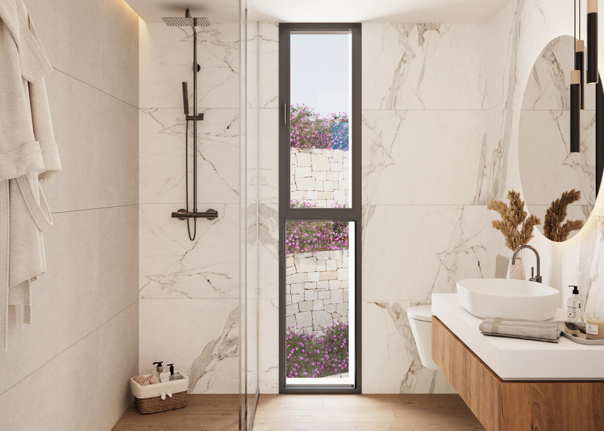 Voel je midden in de natuur door de grote ramen die uitzicht bieden op de bergen en geniet van de rust, ontspanning en heerlijke temperaturen die dit Middellandse Zeegebied het hele jaar door kent.