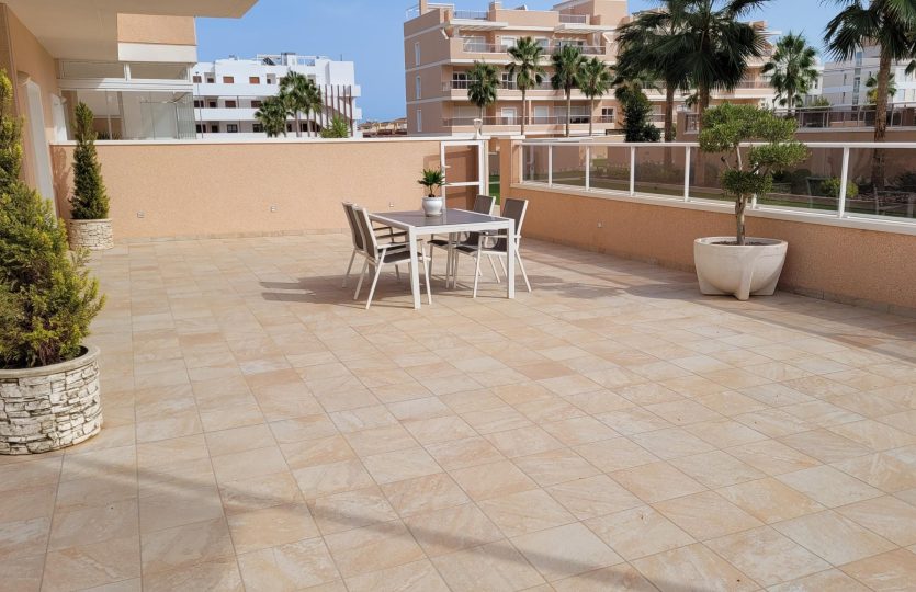 Appartementen met drie slaapkamers en twee badkamers, met terras en ondergrondse parkeerplaats. De appartementen op de begane grond hebben een tuin en de penthouses hebben een solarium met jacuzzi en zomerkeuken.