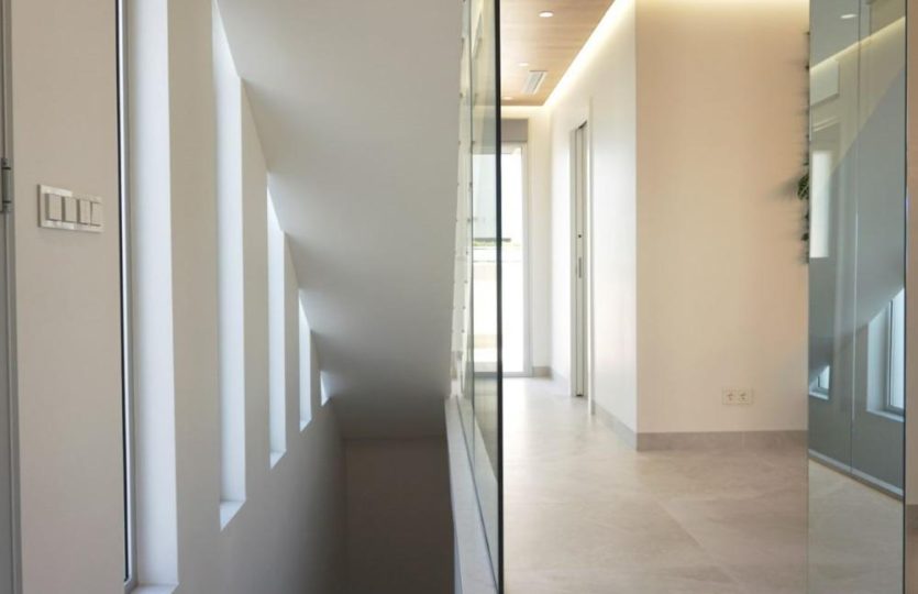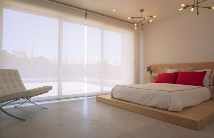 De eerste verdieping bestaat uit een slaapkamersuite en twee slaapkamers met een badkamer. Alle slaapkamers hebben inbouwkasten en delen op hun beurt allemaal een groot terras.