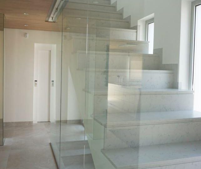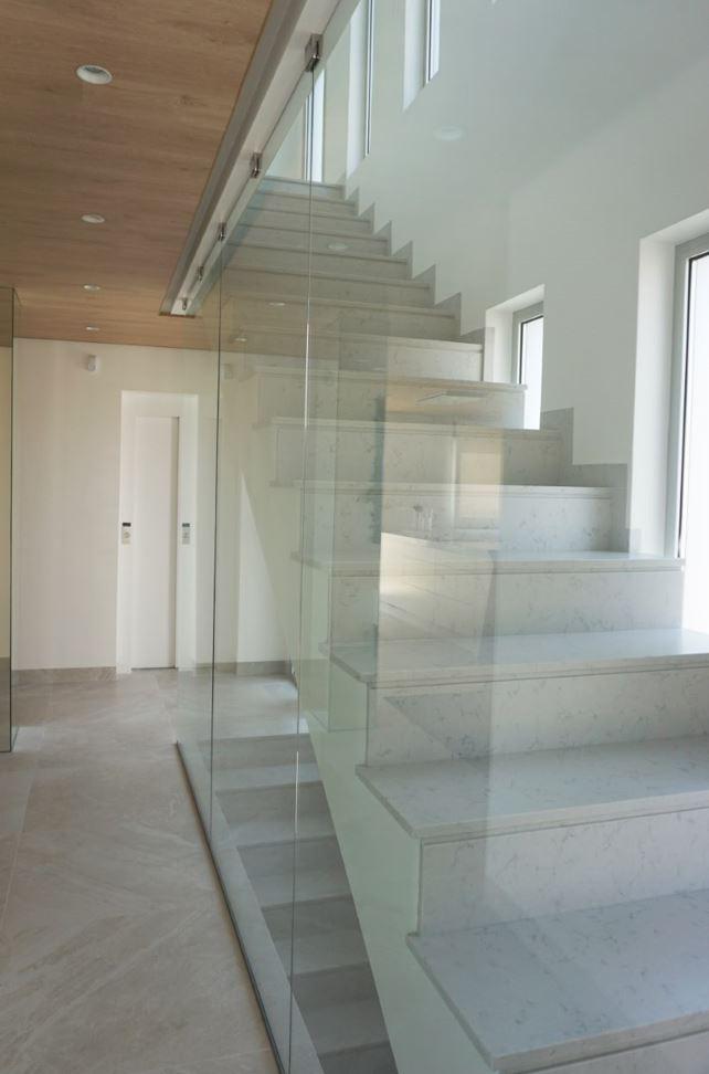 Het huis heeft vier slaapkamers en vier badkamers plus twee toiletten verdeeld over vier verdiepingen: semi-kelder, begane grond, eerste verdieping en solarium. Alle verdiepingen zijn bereikbaar met een lift.