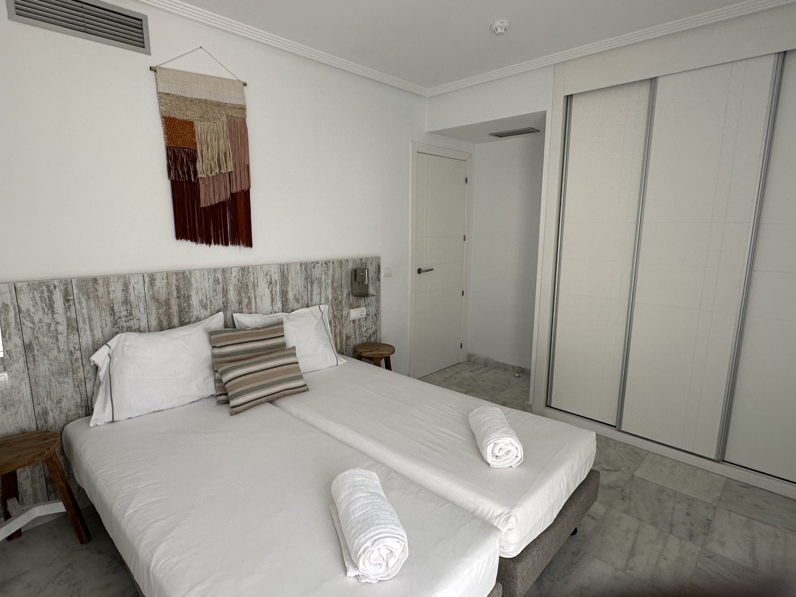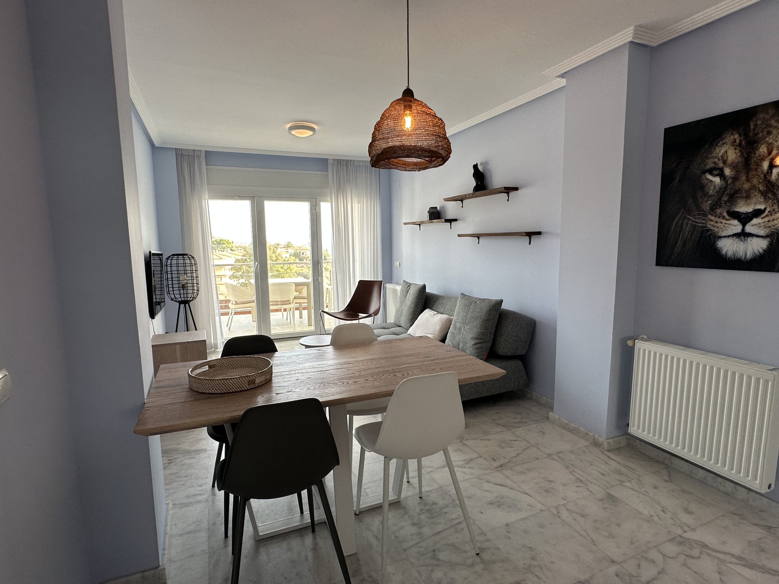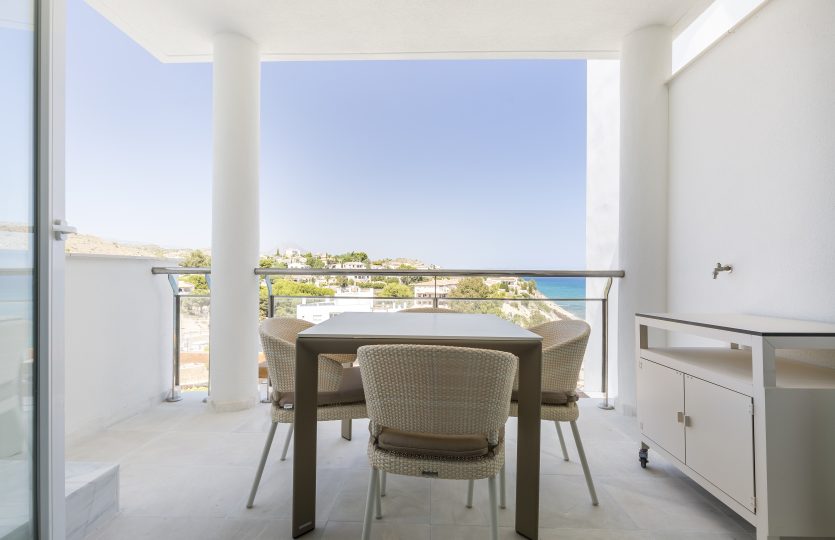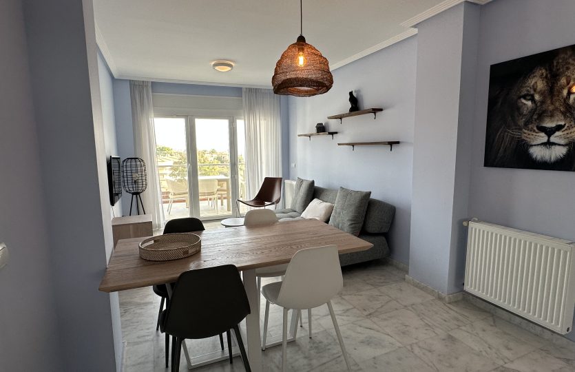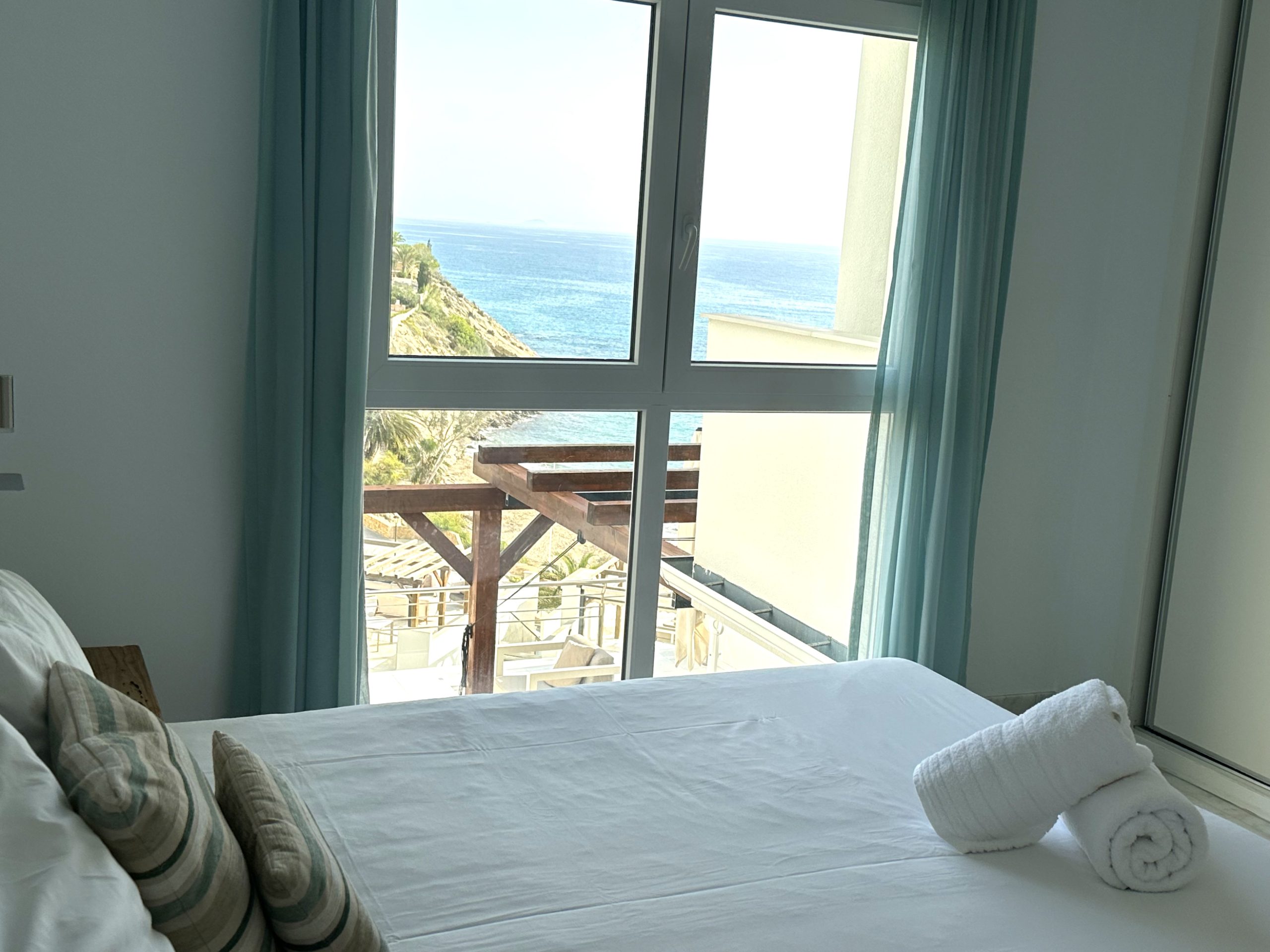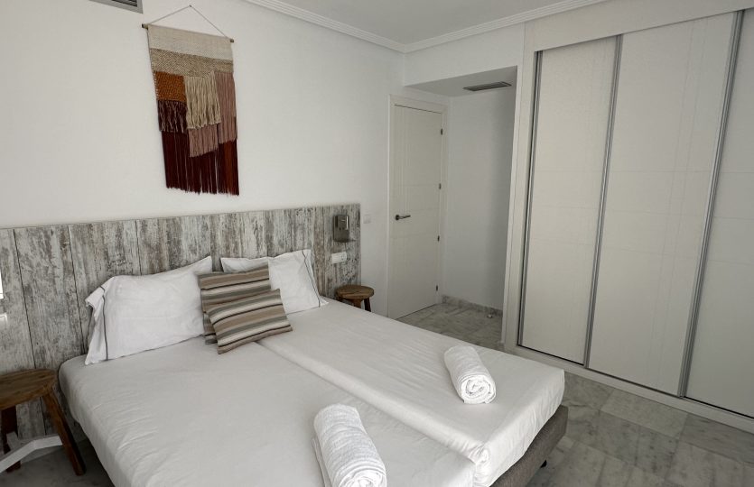 Het volledig uitgeruste appartement is praktisch ingedeeld en direct klaar voor gebruik. Het beschikt over 2 ruime slaapkamers met inbouwkasten, moderne badkamer met inloopdouche en een lichte woonkamer met open keuken. De keuken is volledig uitgerust met een kookplaat, oven, vaatwasser en koel-vriescombinatie, waardoor je alle comfort hebt om thuis te koken terwijl je uitkijkt over de Middellandse Zee. Het volledige appartement is voorzien van airconditioning en is het in de winter wat frisser dan zet je lekker de centrale verwarming aan.