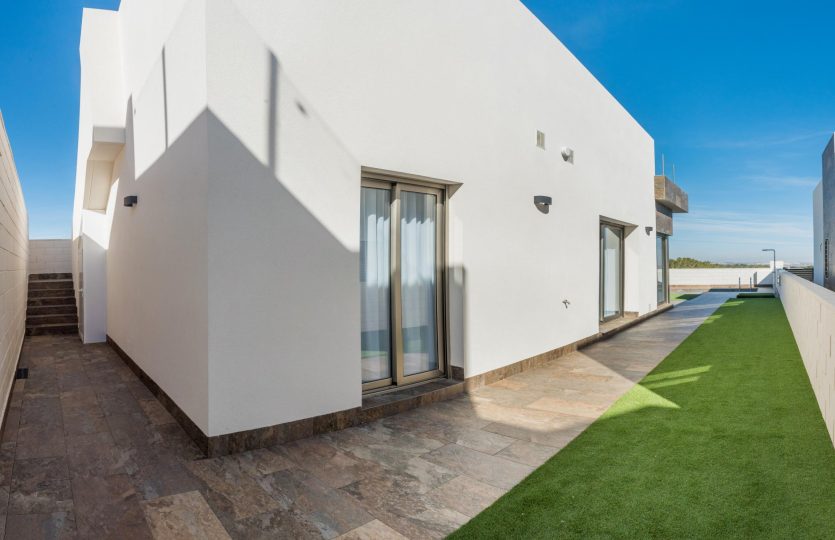 Villa met 3 slaapkamers en 2 badkamers verdeeld over één verdieping met materialen van prachtige kwaliteiten op een groot perceel gelegen in Orihuela Costa, Alicante.